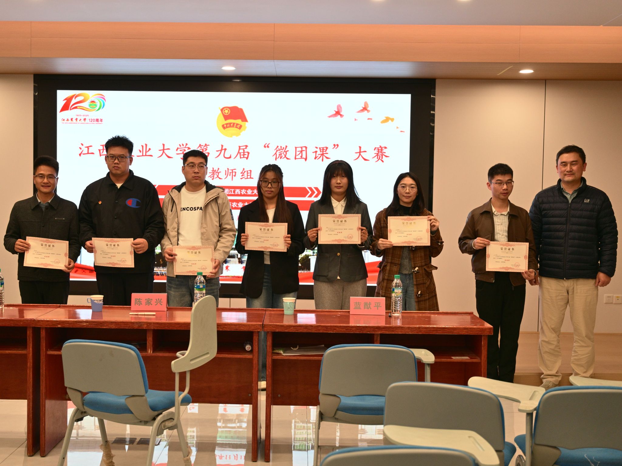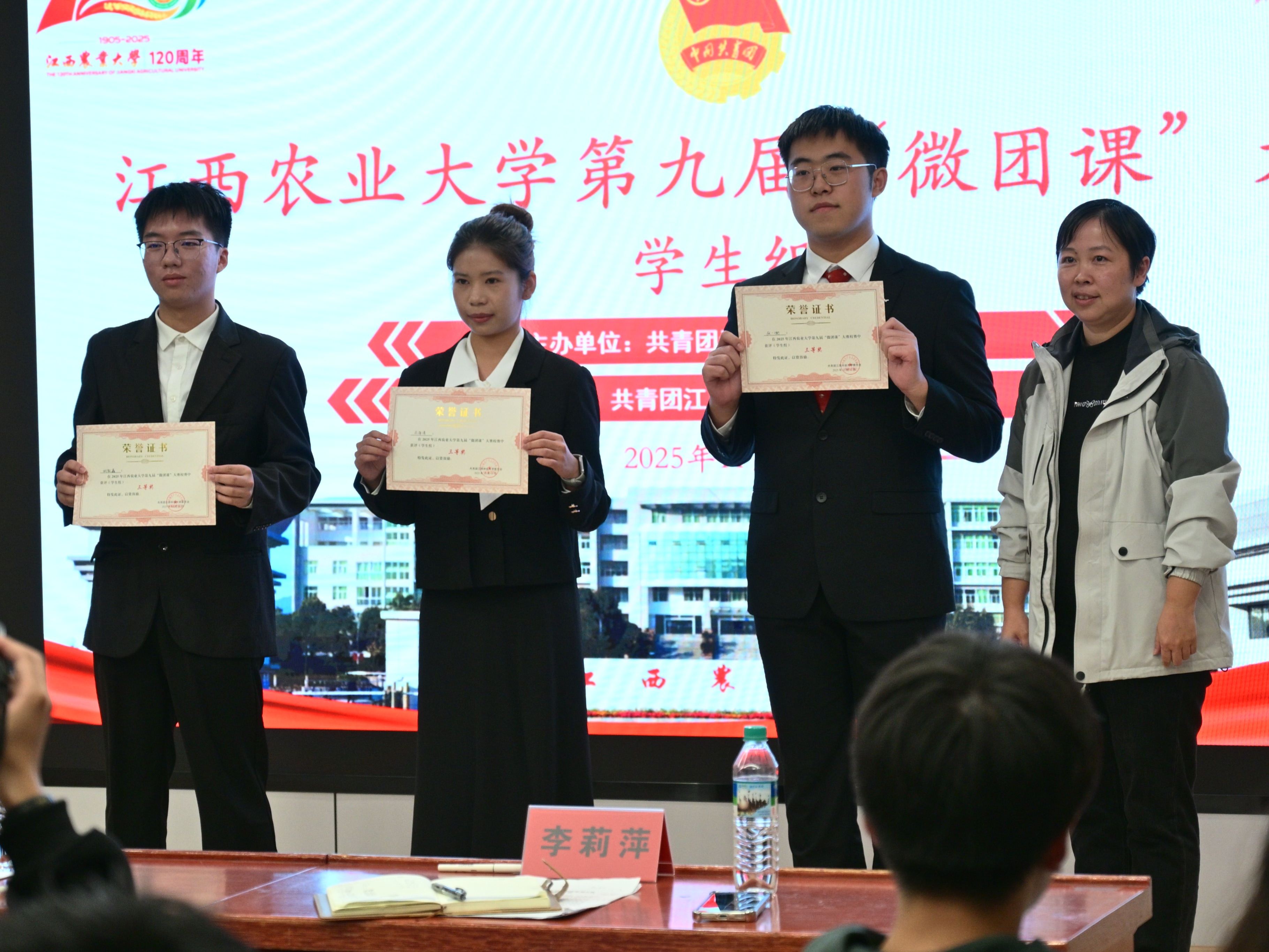 11月11日,由共青团江西农业大学委员会主办的第九届“微团课”大赛决赛于大学生活动中心202报告厅举行,设教师组和学生组两个竞赛单元,我院教师孔彩琳荣获优胜奖,学生张一衡荣获三等奖。